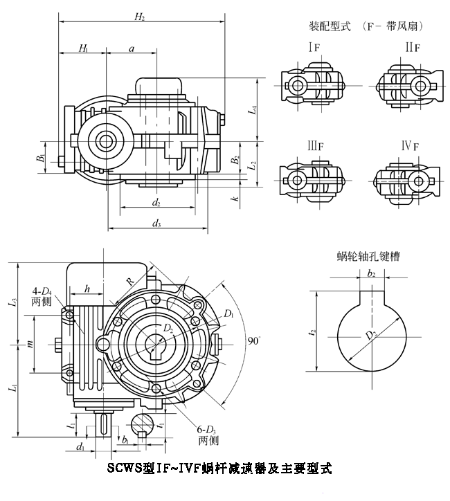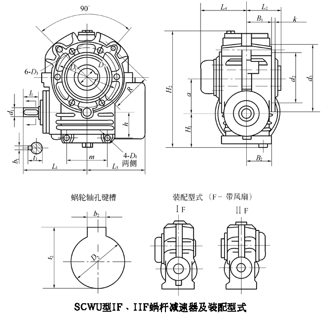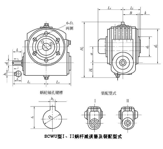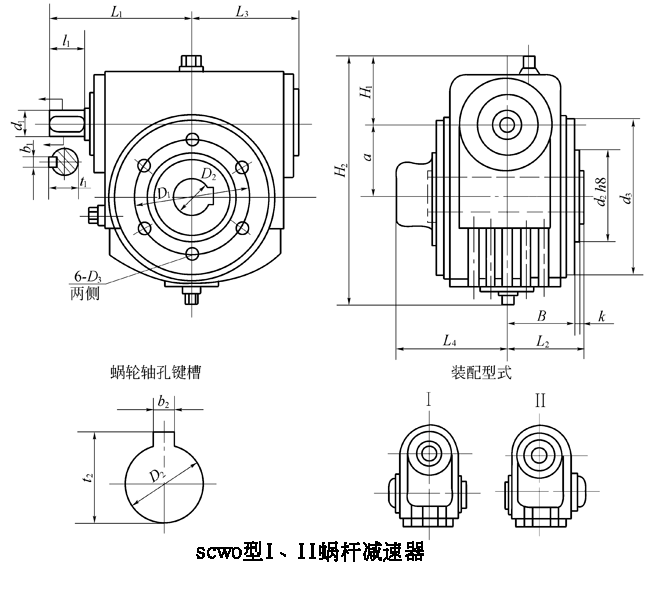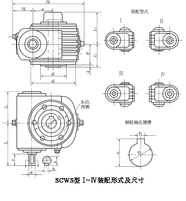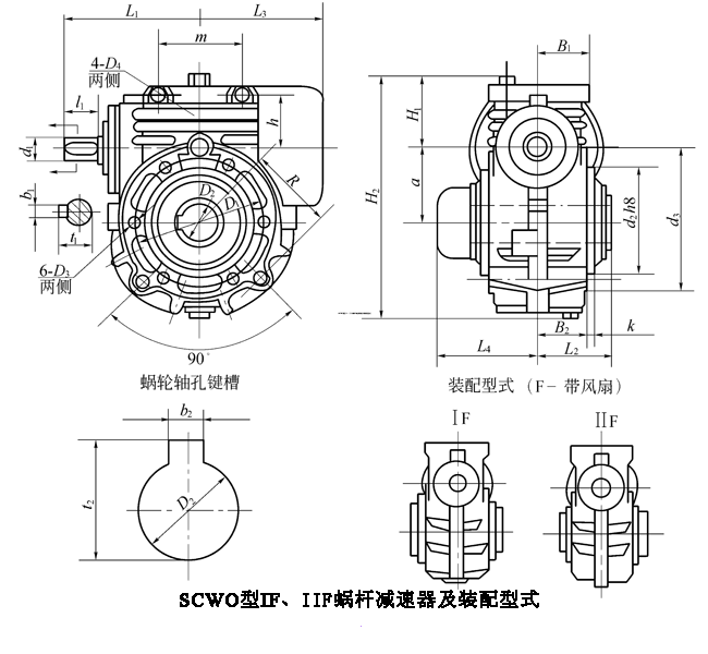 型號\尺寸 | b2 | t2 | L2 | L3 | L4 | H1 | H2 | D1 | D3 | B | d2(h8) | k | m/kg(不包括油) |